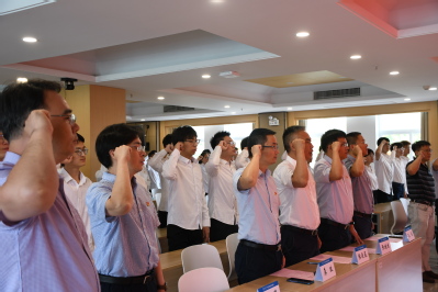 入党宣誓仪式在庄严的《国际歌》声中拉开帷幕。全体预备党员在党委书记张俊基的带领下,面向党旗庄严宣誓。