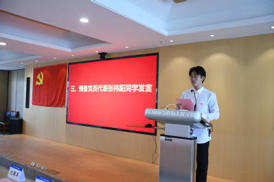 预备党员代表2019级本科生张祎阳代表全体新党员发言,他表示,在党的百年华诞之际,能加入风华正茂的中国共产党,感到无比光荣与自豪。作为一名青年党员,要立志做有理想、有才干、有能力的青年人,用科学理论武装头脑,用过硬本领践行使命,让青春在为祖国、为民族、为人民、为人类的不懈奋斗中绽放绚丽之花。