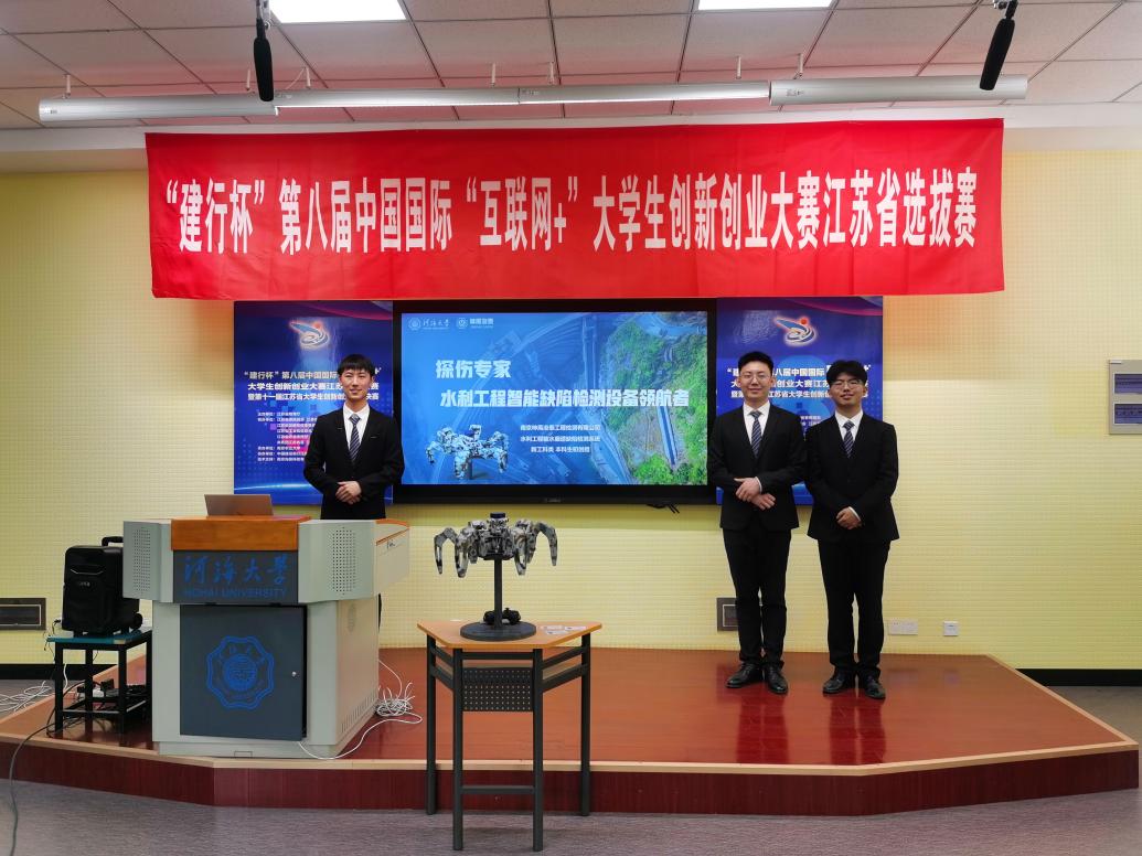 在主赛道本科生初创组,由张蔚、廖芳艺、林晨等老师指导,博彩网 2018级本科生吕辉、2019级本科生杜雨昂、2019级本科生李昊、2020级本科生陈家骥等同学共同完成的创新创业项目《探伤专家——水利工程智能缺陷检测设备领航者》获得大赛一等奖。