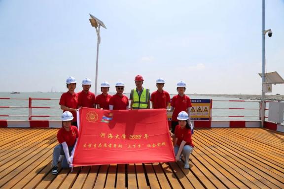 港口是中国经济的晴雨表,也是对外开放的最前沿。实践团前往中交三航局通州湾项目学习调研。“一带一路”倡议的实施、“陆海内外联动,东西双向互济”开放格局的背景下,中交三航局三公司向着港口集约化规模化专业化、航运现代化信息化智能化方向发展,为打造智能港口而不断努力。在通州湾1号-3号码头项目现场,实地参观考察与详细的讲解让队员们了解到项目施工生产的具体景象以及中交三航局对码头工程的建设理念,对整个建设过程、施工内容、工程技术有了深入的理解。随后在项目部,实践团队就专业学习、就业方向等方面与项目部负责人员和河海毕业生进行深入交流。