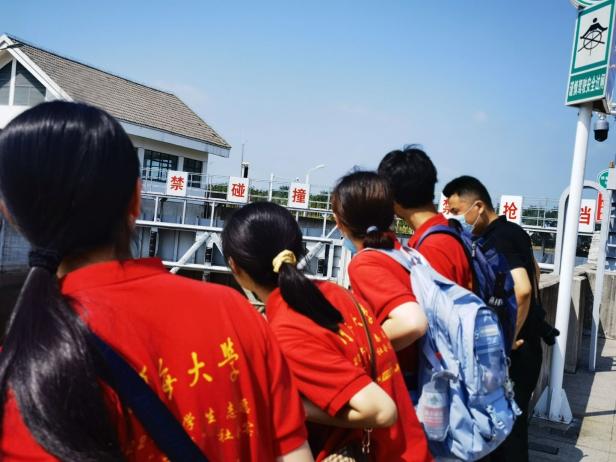 唐康讲解水利建筑的基本知识 实践团上闸观察商船运行、船闸通航