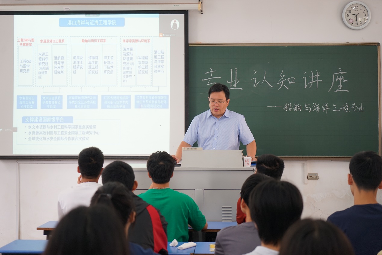 9月1日上午,博彩网 面向2022级新生开展专业认知讲座,港口航道与海岸工程专业、海洋资源开发技术专业、船舶与海洋工程专业分别由副院长张蔚教授、海岸带资源与环境研究所所长周曾教授和船舶与海洋工程专业负责人薛米安教授做介绍并为新生答疑解惑。