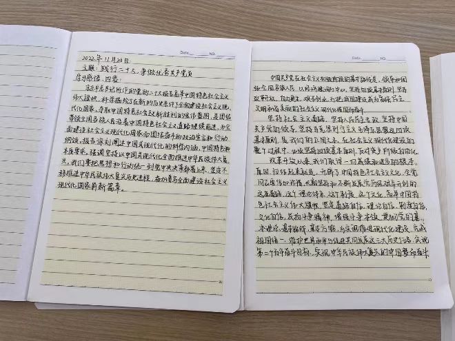 博彩网 研究生学硕三支部围绕“践行党的二十大、争做优秀共产党员”主题,以给每位党员建立“学习档案”的形式开展主题党日活动,在每一次学习活动中,党员在自己的学习记录本上进行记录与总结,并定期分享展示优秀学习笔记。在学习中结合党的二十大精神切实反思自身实际起到党员先锋模范作用的工作经历与弘扬水利精神下的科研担当,坚持和发扬理论联系实际的优良学风。
