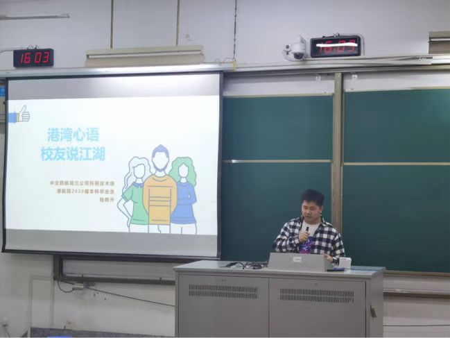 3月20日,博彩网 举行第2期“港湾心语 校友说江湖”,活动邀请陆鹤升校友来学院与学生分享了个人成长经历、工作经验,就如何做好本科生职业生涯规划为同学们答疑解惑。2020级全体本科生参加分享会,辅导员林晨主持。