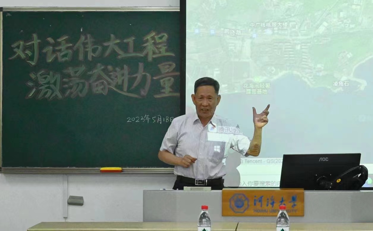 随后,鲁子爱教授与同学们讲述了参与“大亚湾核电站港口及取排水口布置方案研究”项目的时代背景、技术难点、攻克过程、社会经济意义等。他反复叮嘱学生在校期间充分汲取知识,一是没有扎实的学科基础知识就难以开展深入的专业学习;二是掌握知识是参与公平竞争、实现个人梦想的前期条件;三是知识不完全来自课本,应当在大学时期广泛学习包括组织管理、沟通协作在内的通用能力。