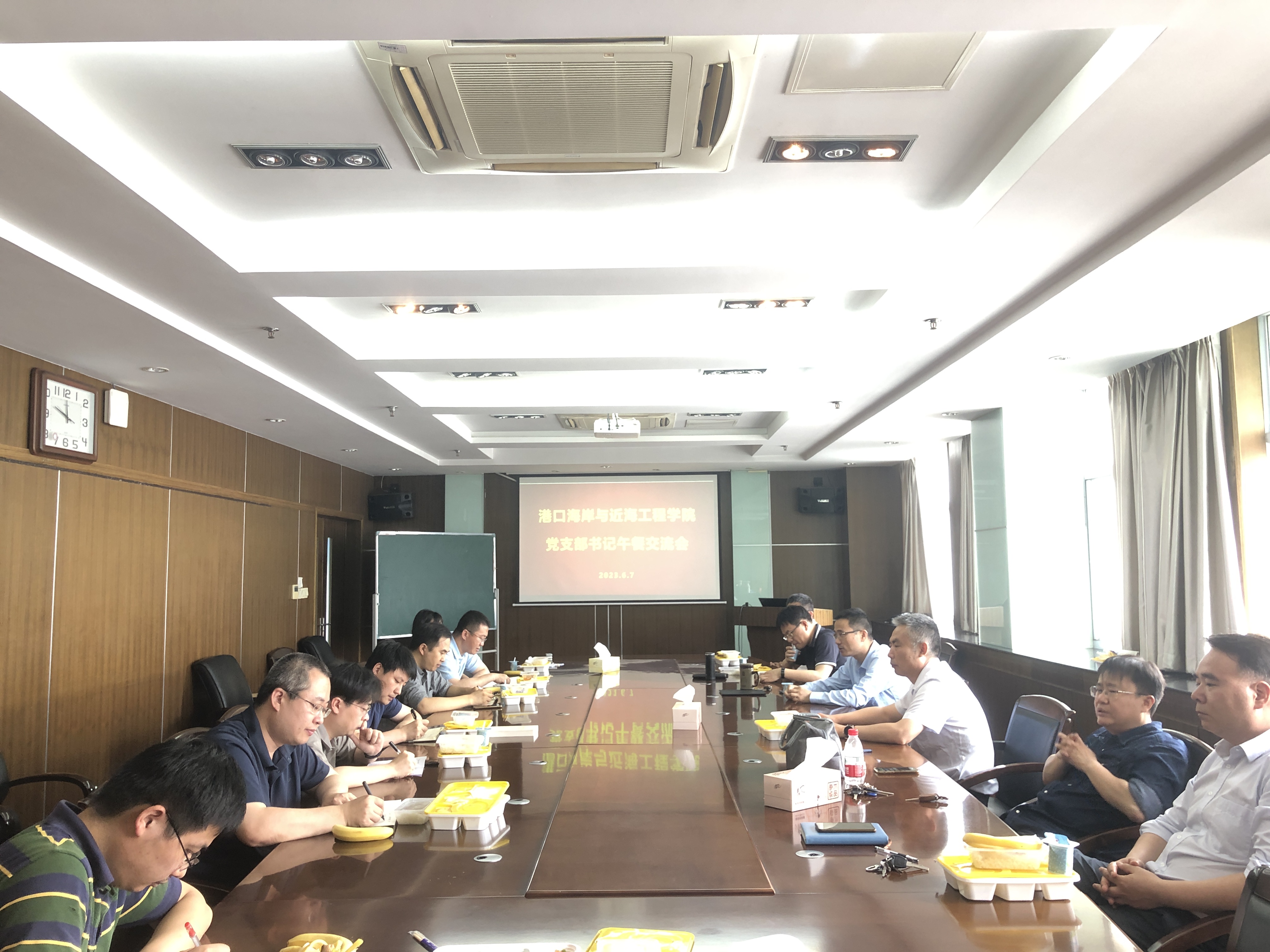 6月7日,学院教职工党支部书记午餐交流会在严恺馆502会议室顺利举行。学院党委书记张俊基、院长龚政、副院长张继生、张蔚、陈永平、党委副书记沈国军、各教职工党支部书记参加活动。