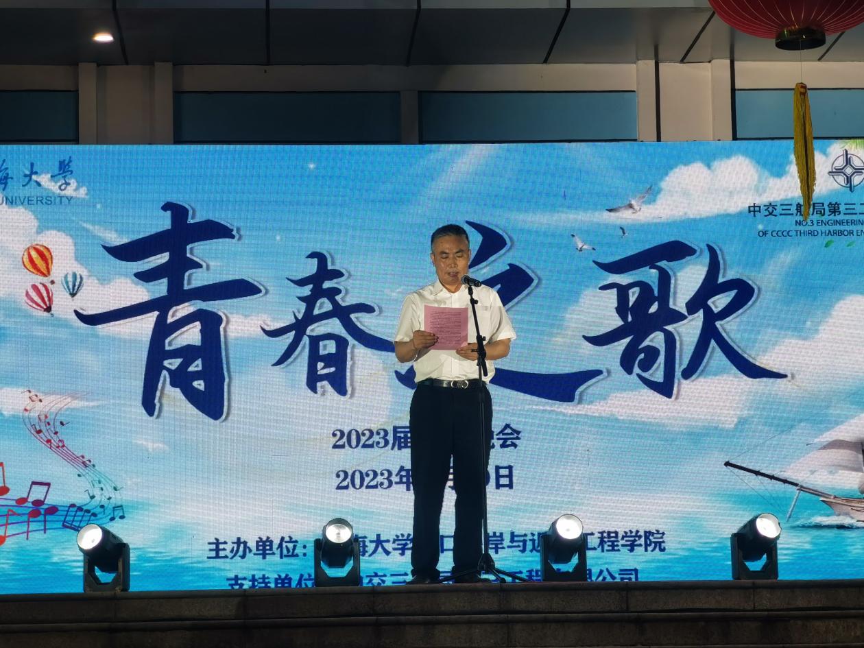 6月20日,博彩网 在严恺馆楼下举办“青春之歌”2023届毕业晚会。学院党委书记张俊基,中交三航局第三工程有限公司副总经理张雷,中交投资智慧新城项目公司总经理范公俊,副院长张继生、张蔚、陈永平,党委副书记沈国军,班导师、辅导员、家长代表及全体毕业生参加活动。