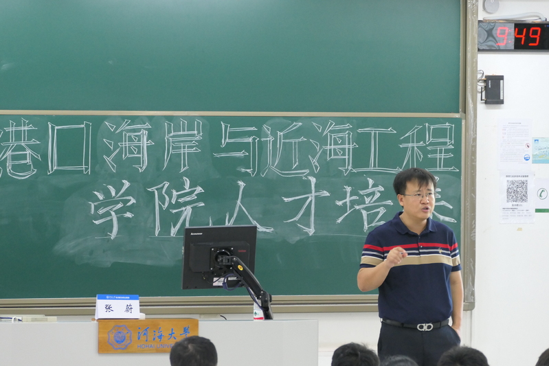 张蔚副院长围绕国家战略意义、专业办学背景、学院人才培养等角度,从洋山深水港、长江口深水航道工程等一系列大国工程的视角,生动介绍了三个专业的内涵。随后,张院长与新生进行了热烈的交流环节,鼓励新生不断提升专业素养、国际视野,培养自身综合能力。