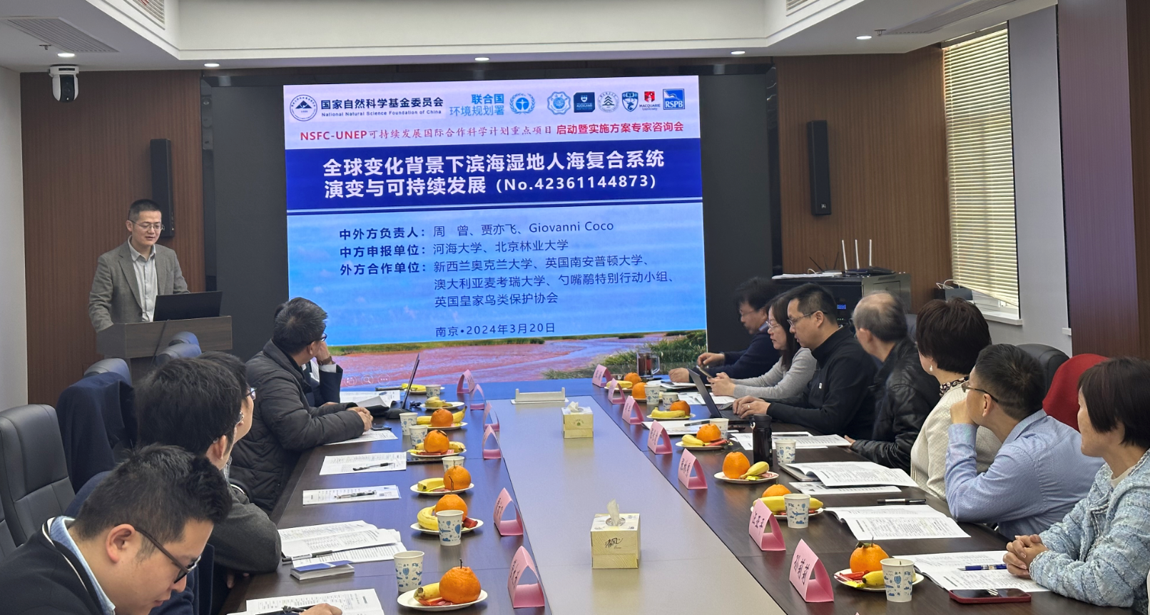 2024年3月20日,博彩网 周曾教授作为项目负责人的国家自然科学基金委员会-联合国环境规划署(NSFC-UNEP)可持续发展国际合作科学计划重点项目“全球变化背景下滨海湿地人海复合系统演变与可持续发展(项目批准号:4236114487)”项目启动会在南京顺利召开。