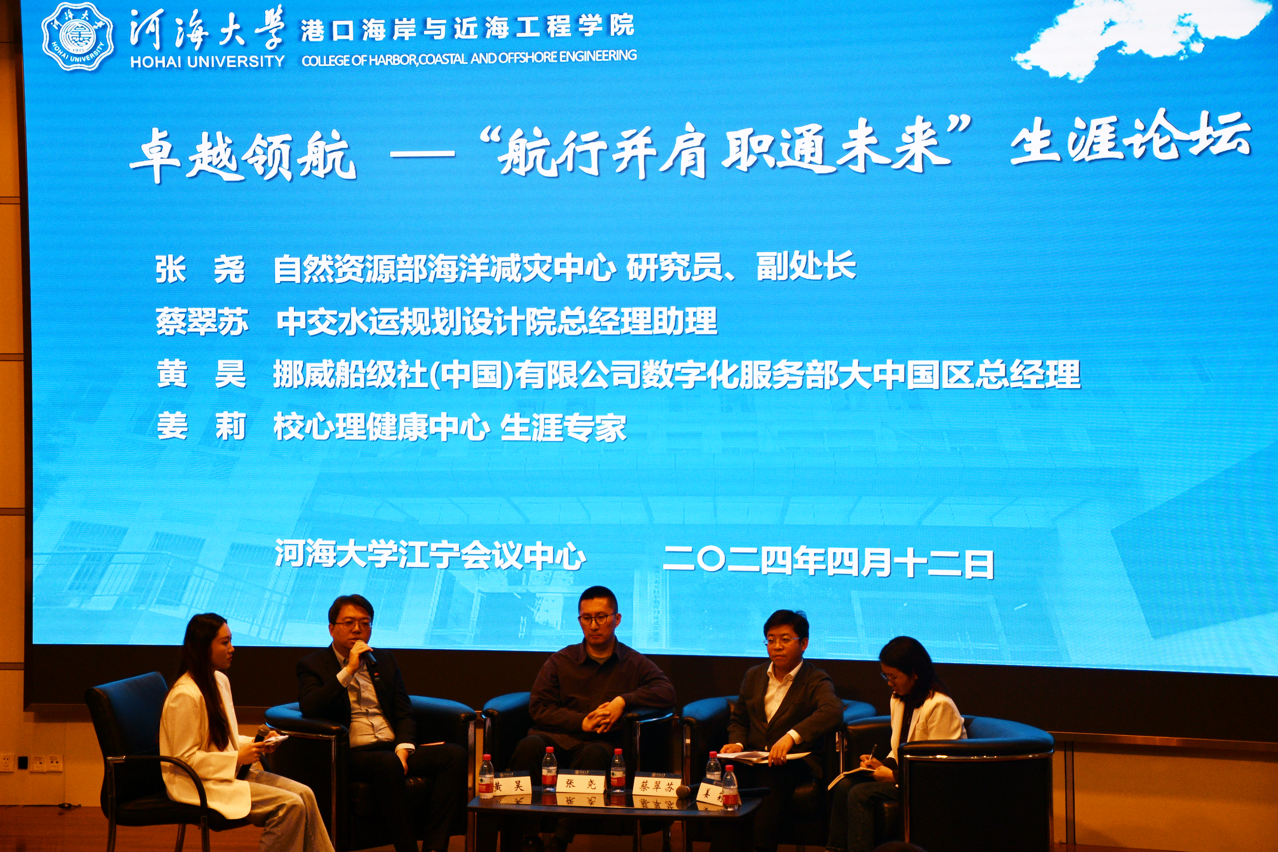 活动邀请到自然资源部海洋减灾中心研究员、副处长张尧,中交水运规划设计院总经理助理蔡翠苏,挪威船级社(中国)有限公司数字化服务部大中国区总经理黄昊,校心理健康中心生涯专家姜莉参加论坛。