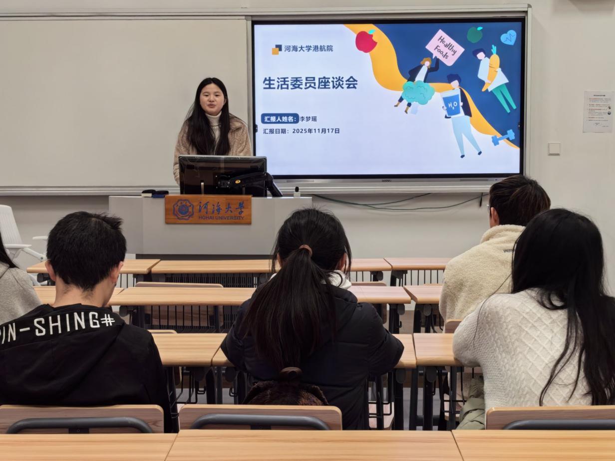 11月17日,生活委员座谈会在常州校区2号楼A107召开,活动由学习与生活服务部副部长李梦瑶主持,各班生活委员共同参与。