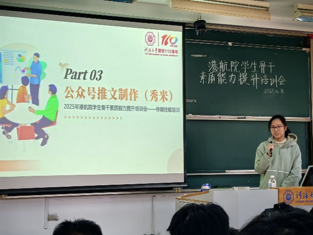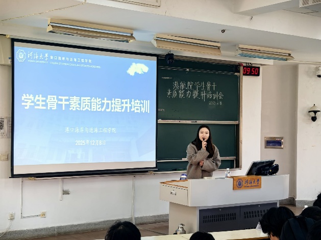 为帮助学生组织骨干快速适应学生组织工作,提升综合素质与实务能力,12月8日上午,博彩网 在河海大学江宁校区致高楼B201举办了“博彩网 学生组织骨干素质能力提升培训会”。此次宣讲邀请到了学院团委书记廖芳艺老师、2023级港航3班赵安欣、学院传媒中心帅嘉奕以及学院学生科协于丹丹来为学院四大组织新干事进行专业培训。