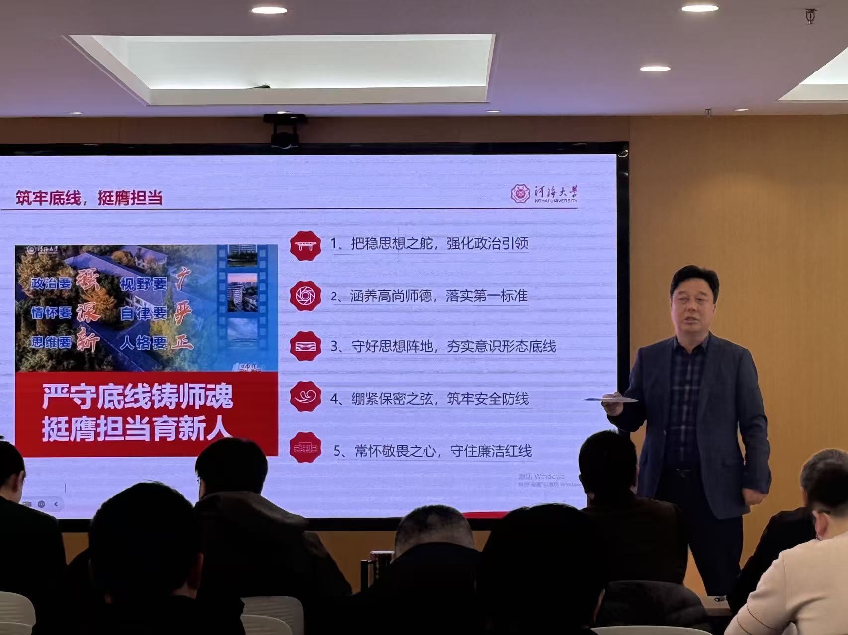 随后张雪刚书记就师德师风建设、党风廉政建设、安全稳定工作作出重点提醒和要求。他强调,全院教职工要始终坚守师德底线,牢记为党育人、为国育才使命;要严格恪守廉洁自律准则,筑牢拒腐防变思想防线;要切实增强安全意识,扎实做好意识形态、校园安全、教学科研安全等各项保障工作。同时,张雪刚书记特别强调了保密工作要求,指出必须高度重视保密管理,严格执行保密制度,规范涉密资料处理,防范泄密风险。
