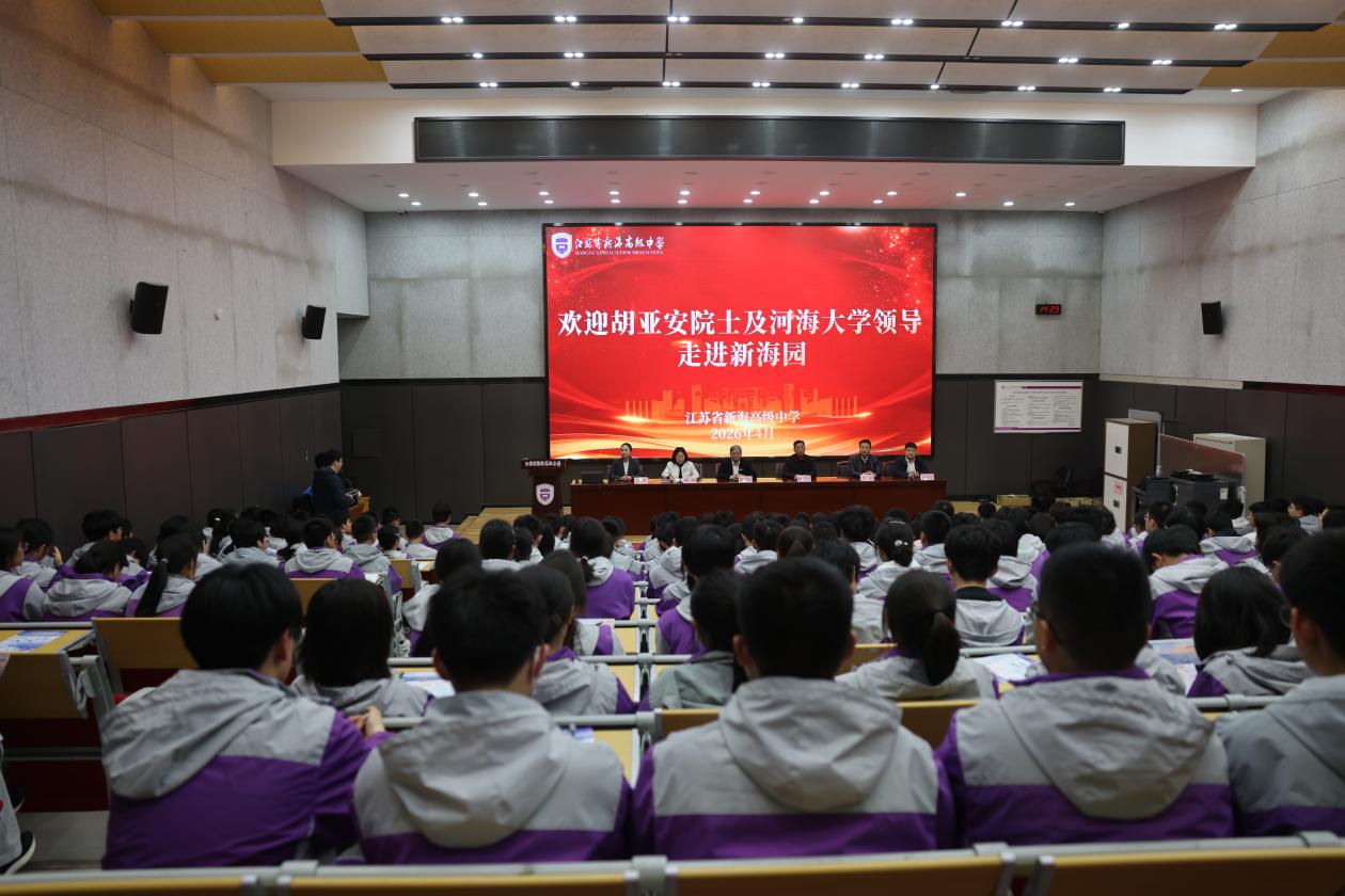 为深化高校与优质高中协同育人、推进优质生源基地建设,4月16—17日,中国工程院院士胡亚安、河海大学校长郑金海率领连云港招生组走进江苏省新海高级中学,先后开展院士科普讲座、招生宣讲、校领导座谈交流与赠书仪式等系列活动,以高端学术资源赋能中学科创教育,以务实合作搭建双高合作育人桥梁。