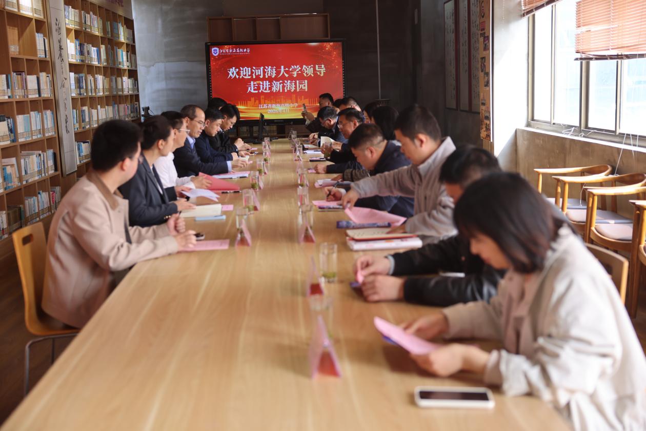 4月17日,河海大学校长郑金海率招生办主任蓝崑、连云港招生组,与新海高中校领导及学科带头人、高三班主任等开展座谈交流与赠书仪式。郑金海校长一行参观新海园课程基地,了解学校特色育人与科创实践成果,对学校多元化育人平台给予高度评价。